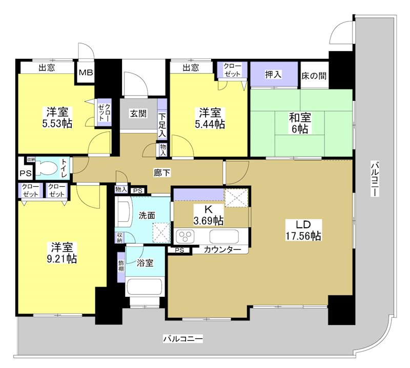 東南角部屋で眺望が良い!広々107.08㎡!